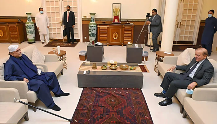 PPP co-chairman Asif Ali Zardari held a one-on-one meeting with Prime Minister Shehbaz Sharif at his Model Town residence today, in which matters pertaining to country’s overall political situation, caretaker set-up and other issues were discussed.