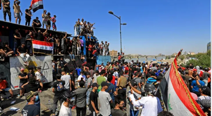 The Sabreen News channel, which is close to pro-Iran factions in Iraq, distributed videos on Telegram of protesters in Baghdad brandishing the flags of various armed groups.