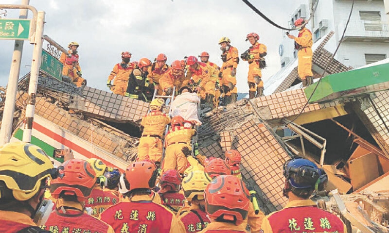 The Hualien fire department said four people who were trapped in the building were rescued.