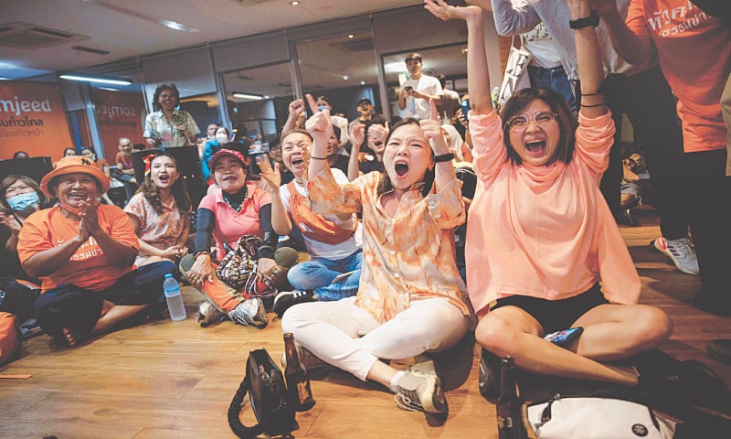 MFP leader Pita Limjaroenrat said his party could take 160 of the 500 lower house seats, declaring that the result “closed the door” on any chance of army-backed parties forming a minority government.